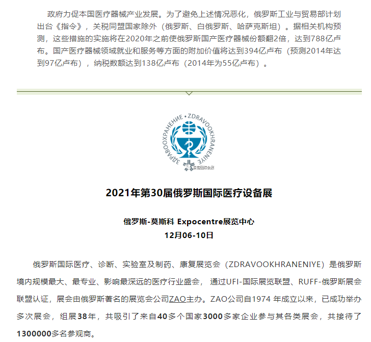近幾年,俄羅斯成為醫(yī)療器械市場(chǎng)發(fā)展最快的國(guó)家之一。從2007到2014年,市場(chǎng)容量增長(zhǎng)了3倍。