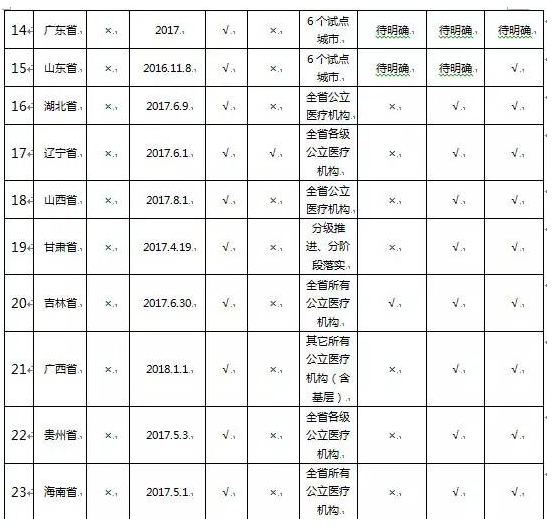 各省“兩票制”實施情況