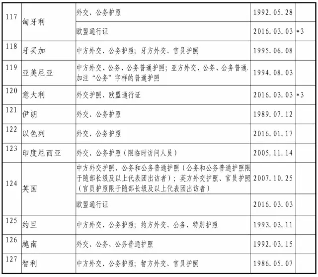 中國與外國互免簽證協(xié)定一覽表