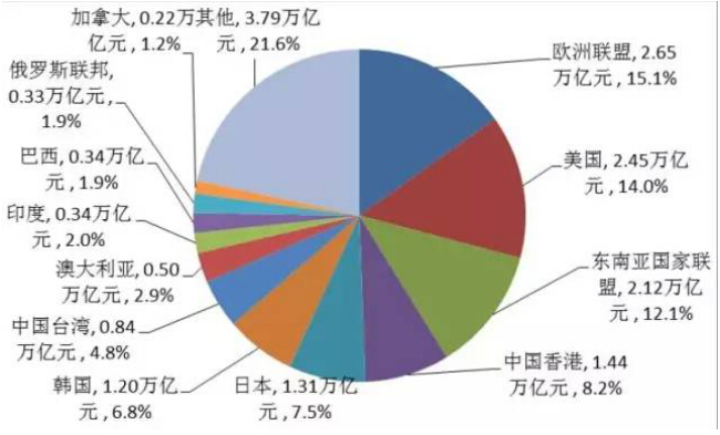 圖2. 2016年前三季度中國與主要貿(mào)易伙伴進(jìn)出口情況及所占比重